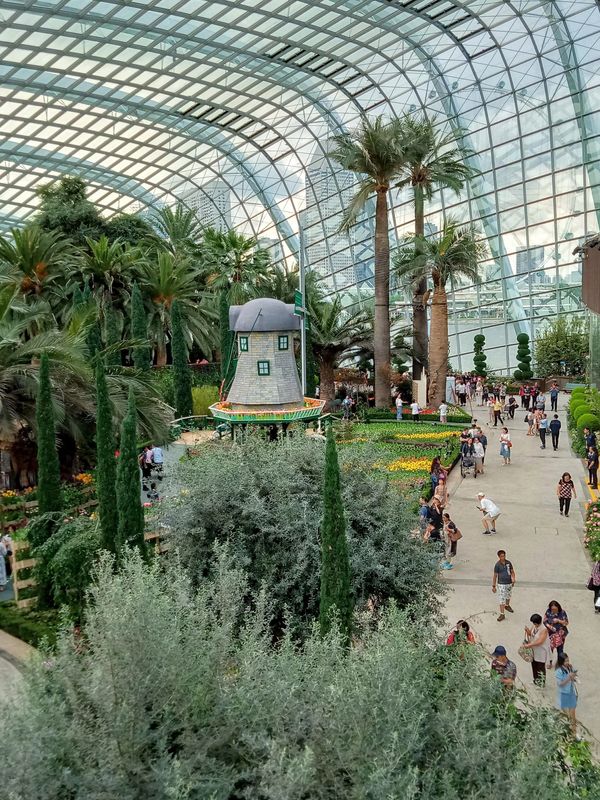 To get to the top of the Cloud Forest, you take an exciting elevator ride that leads you to walkways with breathtaking views. As you make your way back down, you'll see the second-largest indoor waterfall in the world, which is truly a mesmerizing sight. The power and beauty of nature are on full display here.